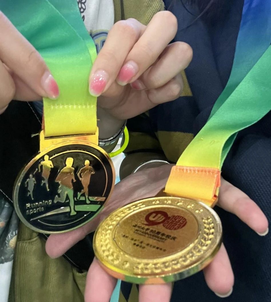 当运动员抵达终点之后,工作人员便会将一面印有活动主题logo,另一面印有温大90周年校庆logo的纪念奖牌分发给他们。