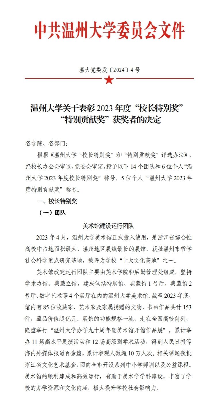 喜报:美术馆建设运行团队荣获雷竞技raybet官网入口2023 年度“校长特别奖”