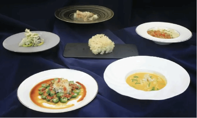 图为浙江旅游职业学院千岛湖国际酒店管理学院西餐专业党员师生研发打造的“淳味菌甄”品牌菜品。