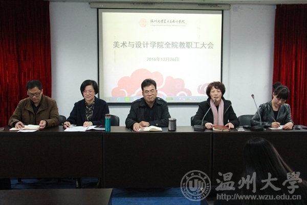 2016年12月26日下午,我院在2B4001多功能厅召开期末全体教职工大会。院长李运河,党总支书记张丽萍,副院长谢子静、王薇,党总支副书记杨振海出席会议,会议由张丽萍主持。会上,以无记名投票的方式对学院领导班子进行了民主测评,校党委组织部的老师组织并监督了整个投票过程。李运河院长对本学期学院主要工作做了回顾总结。在教学工作方面,我院顺利完成了迎接“本科教学审核性评估回查”的工作,评估组在参观了我院与风笛服饰合作建立的服装设计专业省级教学实践基地和学生创新创业团队后给与高度评价;在科研工作方面,教师成功申报多项国家级省级教科研项目,在一级刊物发表论文多篇,美术学专业老师分别在国内外举办了个人画展,多人参展国家级省部级美术作品展并获奖,科研成果无论从数量上还是质量上均超越了去年同期;在学科竞赛上,我院成功承办第八届浙江省高校工业设计竞赛,受到全省几十个参赛院校师生的广泛好评,树立了很好的口碑;在服务地方工作方面,“温州时尚学院”参加温州时尚展,得到了张耕市长、李校堃校长、林娟娟书记等领导的充分肯定;与瓯海区联合设立的温州时尚产业创新研究中心,正式挂牌入驻瓯海时尚智造小镇;与红蜻蜓、风笛、四目、方氏等校企合作项目也逐一推进。他指出,在肯定可喜成绩的同时也要看到学院在某些方面仍存在不足,比如科研项目申报的数量层次、加快国际化的步伐等方面我院还需继续努力。谢子静、王薇、杨振海分别就各自分管工作做了学期总结汇报,并对期末以及寒假工作作了具体部署。学院教学督导组组长黄良老师就本学期的督导工作做了汇报。他对具有严谨治学态度和高质量的教学效果的教师给与了肯定和赞扬,也提出了老师们课堂教学方式方法及对听评课不够积极等问题。 张丽萍做总结发言。她充分肯定了一年来学院在各个方面取得的成绩,对做出特别贡献的老师提出了表扬。她指出,从学院党总支年度考核工作的各项数据可以看出,党员成为各项工作的核心骨干和主力军,在教学、科研、管理一线充分发挥了党员应有模范带头作用。她还强调在学期末要继续严守良好教风,期末考试要严肃考风考纪,做好育人工作中每个环节的尽职尽责。她希望全体教师齐心协力、众志成城,为学院抓住机遇快速发展做出每个老师应有的贡献!