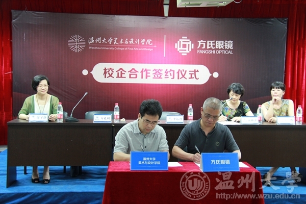 2016年6月24日下午两点,雷竞技raybet官网入口和浙江方氏眼镜制造有限公司校企合作签约仪式在2B4001会议室隆重举行。浙江方氏眼镜制造有限公司董事长方孔利,学院院长李运河,党总支书记张丽萍,副院长谢子静、王薇共同出席签约仪式。参加仪式还有产品设计系、服装与服饰设计系专业教师及部分学生。
