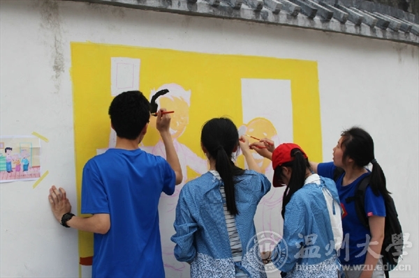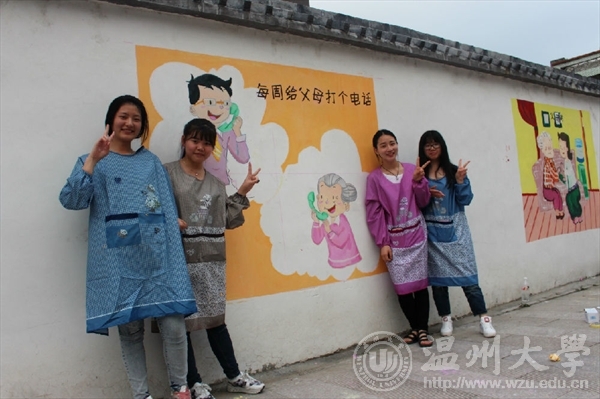 为了进一步响应与落实市委“新青年下乡”主题精神,弘扬传统孝道美德,美院志愿者们携手教师教育学院的“小老师们”一同参加了“乐清市绘二十四孝墙绘”的活动。