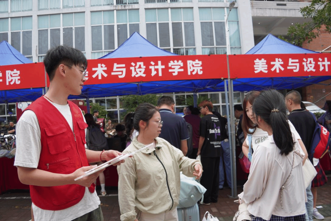 清晨伊始,学院报到点人头攒动,温馨有序。一抹抹忙碌的“志愿红”构成了校园里最亮丽的风景线。由学院党员和学生骨干组成的志愿者团队,以高度的责任感和亲切的笑容,穿梭于迎新一线。他们耐心细致地引导新生办理各项入学手续,主动帮忙搬运行李,提供校园学习生活咨询,为新生和家长拍照留影等,用实际行动诠释了“奉献、友爱、互助、进步”的志愿精神,让初来乍到的新生和家长们感受到了美术学院大家庭的温暖与关怀。