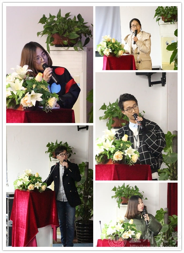 12月30日晚,雷竞技raybet官网入口团委学生会2015-2016学年第一学期第四次全体成员大会在美院楼2B4001召开,参与此次全委会的人员有团委书记叶筱卉老师,团委指导老师商义铮老师,团委副书记孙彦鑫,学生会主席张昇,学生会副主席刘秀娜,学生会副主席周志豪,青协会长杨猛以及团委学生会全体成员。 会议第一项议程是“每月之星”的评选。转眼间,3个月前在这里面试并荣幸的成为了团学的一员,工作时还会手忙脚乱的青涩的干事们,现在已经可以自信地站在团学全体人员面前做工作总结了。干事们以十足的诚意准备的精彩演讲博得阵阵掌声。正如有个干事所说的那样:“你的人生永远不会辜负你,那些转错的弯,走错的路,留下的泪,滴下的汗水,全都会让你成为独一无二的自己。”相信经过团学的工作磨练后,干事们会更加优秀,成为更好地自己。 第二项议程是每个部长汇报本月工作,各部长诚恳陈述了工作的优缺点,也对工作做出了简要说明。 第三项议程是老师讲话。团委书记叶筱卉老师和团委指导老师商义铮对于“每月之星”的演讲表示非常欣喜。团委书记叶筱卉老师说,“每月之星”不仅展示了个人形象,也展示了部门风采。同时老师也建议干事们多谈自己的工作成长,和具体的点滴会更好展示个人的学习收获。同时,叶老师也分享了她的体会心得。叶老师说,比起成绩,成长更重要。我们现在获得的成绩是对我们付出的认可,希望同学们工作中得到锻炼,有所成长。在成长中,我们不能随波逐流,要做好自己的选择,并在现在和将来做好自己。看看自己今天做了什么,有什么可以引领自己,使成长在足够长的时间里得到积淀,再回过头给自己做一个成长鉴定。 最后,学生会主席张昇的讲话让同学们体会到身为团学一员每个人工作的重要,和必须的责任感。团委学生会在和谐的气氛中结束了,相信优秀的干事们可以在工作中得到更多磨砺,让美院团学更加精彩。图:设计宣传部文:设计宣传部