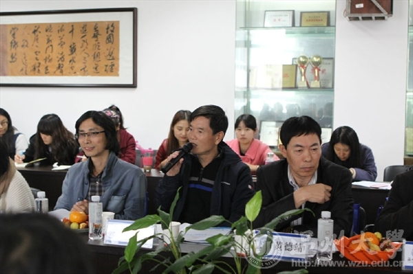 我院理论教研室主任胡建南老师作为此次美术师范培养方案计划的修订教师代表,简单介绍了该方案,提出此次方案上进行的调整,并指出当下美术师范培养方案修改势在必行,并征求其余教师的意见和建议。