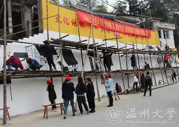 为了响应与落实市委“新青年下乡”主题精神。2015年12月12日,雷竞技raybet官网入口“艺家人”青年志愿者协会带领美术学院志愿者们来到温州市乐清城东街道珠垟村,进行了为期一天的墙绘活动。