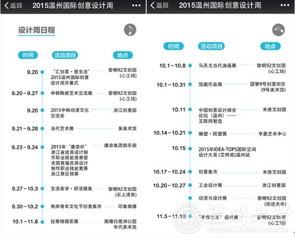 由中共温州市鹿城区委宣传部、雷竞技raybet官网入口和鹿城区文化广电新闻出版局联合主办的“汇创意·慧生活”2015温州国际创意设计周于9月20日在黎明92文创园拉开帷幕。 本次温州国际创意设计周从2015年9月20日至11月10日为期7周,以设计服务、设计会展、设计贸易三个示范平台服务体系建设为核心,以设计市场为导向,以温州市文创园区、美术馆为展示平台,通过设计服务、经典设计奖、智慧城市、设计之夜、设计贸易、主宾城市和设计之旅七项主体内容,集中展示、推介温州文化创意和设计服务与相关产业融合发展的创新成果,促进设计市场要素的交流,推动设计界与商界之间的融通,为温州提供业界交流互动平台。