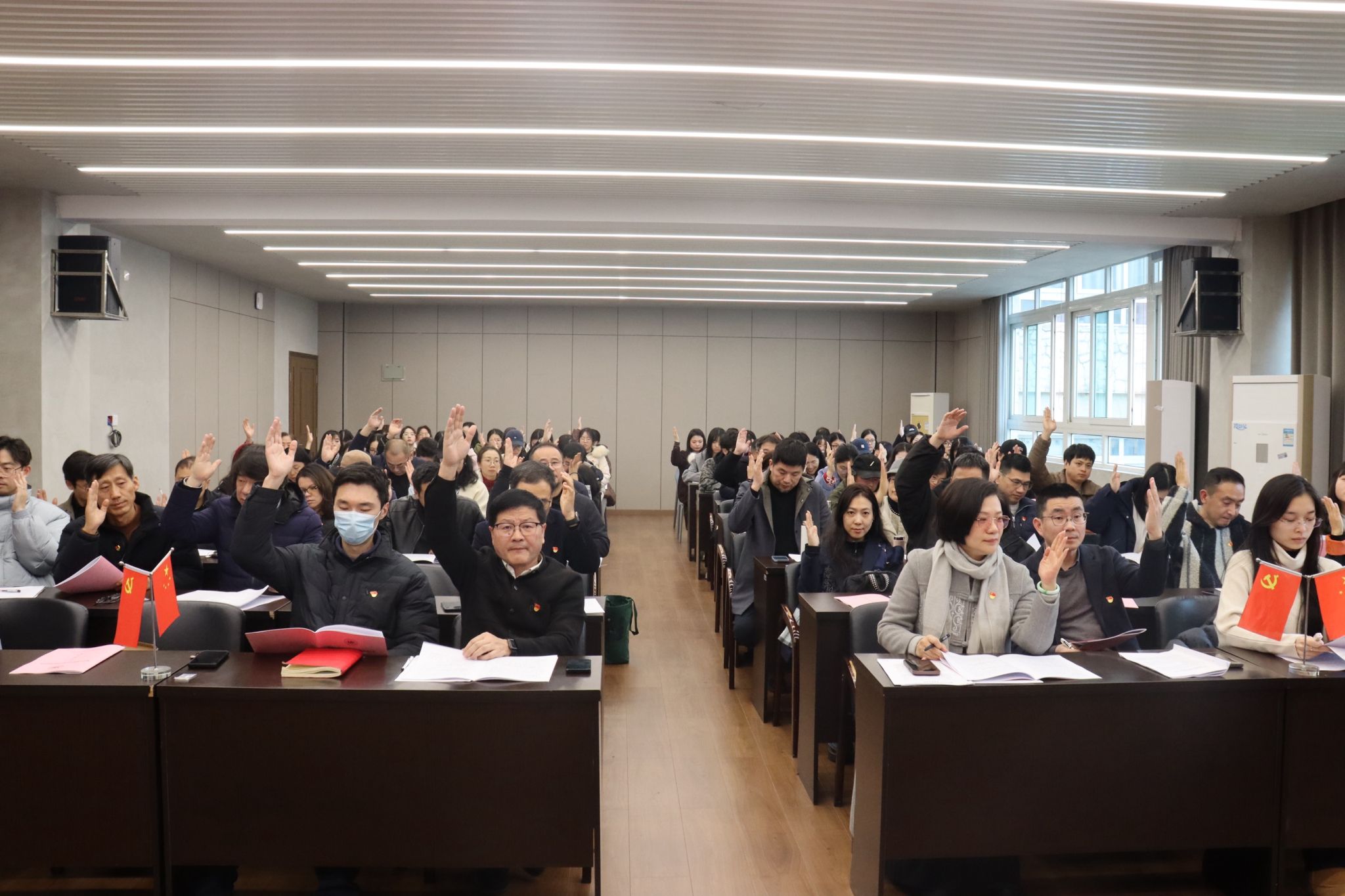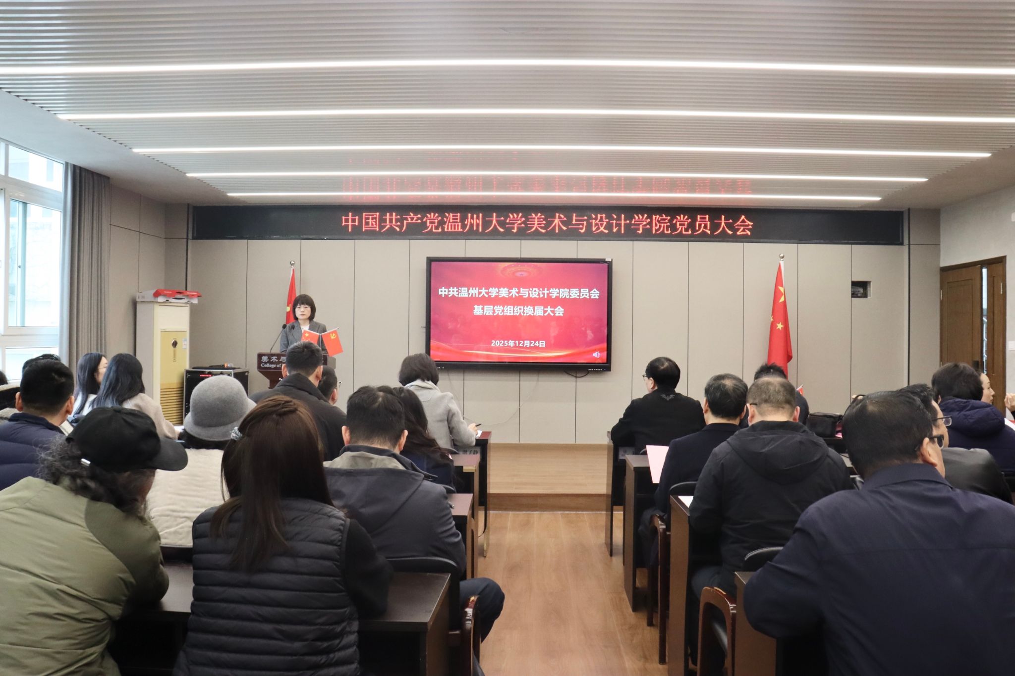 2025年12月24日下午,中共雷竞技raybet官网入口党员大会在庄严的国歌声中隆重开幕。全院党员齐聚美术楼2B4001会议室,共同回顾总结过去五年的奋斗历程,擘画未来五年的发展蓝图,选举产生新一届党的委员会和纪律检查委员会。大会现场气氛庄重而热烈,洋溢着团结、民主、奋进的气息。