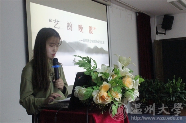 九位实践队队长向老师和同学们展示了由不了解、不敢做,到接触后开始不舍的多样精彩而又美好的经历。同爱同行通过对身体有缺陷的儿童进行帮助,提倡了人与人之间的爱心传递。“小树成长”则以中华传统家风家训为主题,将自身知识传递他人,并真诚提出“不忘初心,方得始终” 。“绘暖向南”通过走向大山,在骄阳下墙绘,在蚊虫叮咬中完成支教课程,更告诉我们为梦想奋斗需要付出忍耐与汗水。“鞋蕴”则寻温州的根溯历史的源,寻工匠老人,提出一个人,一件事,一辈子的工匠精神,引人深思。“艺绘”实践队却选择用自身所学去服务于公共事业,用彩绘水井盖等方式给城市增添色彩美丽,让艺术存在于人们的生活中,得到了他人一致好评。“艺韵晚霞”选择在敬老院服务老人,提倡了关爱社会弱势群体的大爱精神,增强社会责任感。“行迹”实践队通过乡村支教,给乡村小孩子们带来各式各样的惊喜课程,让他们也感受到上课的多样乐趣。“大手牵小手”队员们通过与留守儿童生活,号召社会关爱留守儿童,让社会充满阳光与关爱。