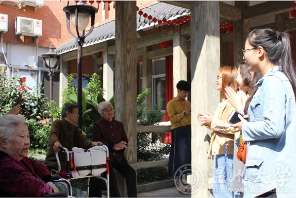 2017年10月28日,温大雷竞技raybet官网入口“艺家人”青年志愿者协会于上午8点30分在E区门口集合,前往名盛敬老院开展重阳节关爱老人志愿服务活动。