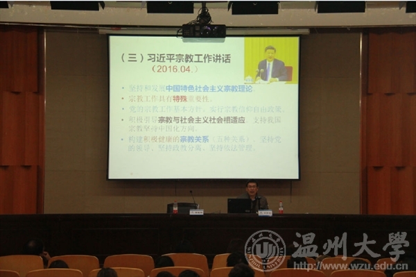 12月13日下午,雷竞技raybet官网入口在雁山厅开展本学期第二次形势与政策课,雷竞技raybet官网入口马克思主义学院党总支书记王柏民作题为“马克思主义宗教观解读”的形势与政策讲座,雷竞技raybet官网入口17级全体同学参加讲座,讲座由美院党总支副书记杨振海主持。 王柏民书记从马克思主义宗教观的哲学基础、基本内容、中国化三个方面进行解读。王书记指出,21世纪宗教发展趋势呈现四个特点,一是全球信教人口比例快速下降;二是极大主流宗教的信徒人数持续增长;三是宗教的国际化格局持续变化;四是宗教的国际影响持续变化。他还指出,我国信教比例相对较低,但整体趋势上呈现“宗教过热”的现象,具体表现为宗教渗透、分裂活动、违法活动以及宗教矛盾。 随后王柏民书记对马克思主义宗教观做详细阐述:按照唯物史观,宗教是思想上层建筑中的一个组成部分,宗教有其存在的经济基础。马克思、恩格斯认为:宗教是颠倒了的世界观,一切宗教都不过是支配着人们日常生活的外部力量在人们头脑中的幻想的反映,在这种反映中,人间的力量采取了超人间的力量的形式。关于宗教的根源和宗教的消亡,马克思在《资本论》中说“……只有当实际日常生活的关系,在人们面前表现为人与人和人与自然之间极明白而合理的关系的时候,现实世界的宗教反映才会消失,……这些条件本身又是长期的、痛苦的历史发展的自然产物”,恩格斯在《反杜林论》中也提到“取缔手段是巩固不良信念的最好手段”。因此对于宗教要避免两种倾向:一是将宗教与社会主义、共产主义混为一谈;二是以行政命令消灭宗教。 如何处理宗教问题?王柏民书记提到,2016年4月习近平总书记关于工作的讲话提出:坚持和发展中国特色社会主义宗教理论,实施宗教信仰自由政策,积极引导宗教与社会主义社会相适应,构建积极健康的宗教关系。十九大报告中指出,要全面贯彻党的宗教工作基本方针,坚持我国宗教中国化方向,积极引导宗教与社会主义社会相适应。党的宗教工作基本方针即“四句话”:全面贯彻党的宗教信仰自由政策、依法管理宗教事务、坚持独立自主自办原则、积极引导宗教与社会主义社会相适应。 最后,王柏民书记总结道:“宗教是社会文化现象,是对现实世界的虚幻反映,我国在政策方面尊重信仰自由,引导宗教与社会主义社会相适应,构建积极健康的宗教关系,推进宗教工作法制化;作为有理想有信念的大学生,特别是共产党人、共青团员要做坚定的无神论者,决不能在宗教中寻找自己的价值和信念。”