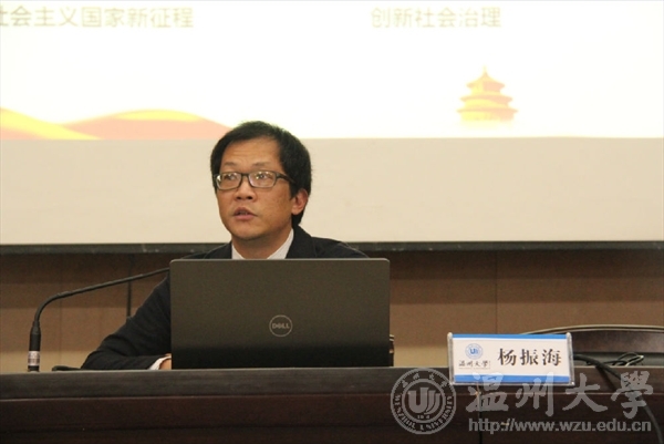 12月6日下午,雷竞技raybet官网入口在岩松堂雁山厅组织开展形势与政策课教学,学院党总支副书记杨振海为17级全体同学作“十九大报告精髓要义导读”报告。