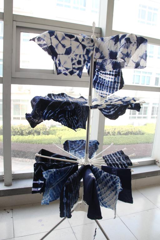 随着扎染制作的完成,我们将所有的扎染作品进行了集中展示。自秦汉流传至今的扎染技术,染出的是美丽的图案,传承的是艺术的文化精神,传递的是温暖的人文情怀,也展现了古代妇女的勤劳与智慧。