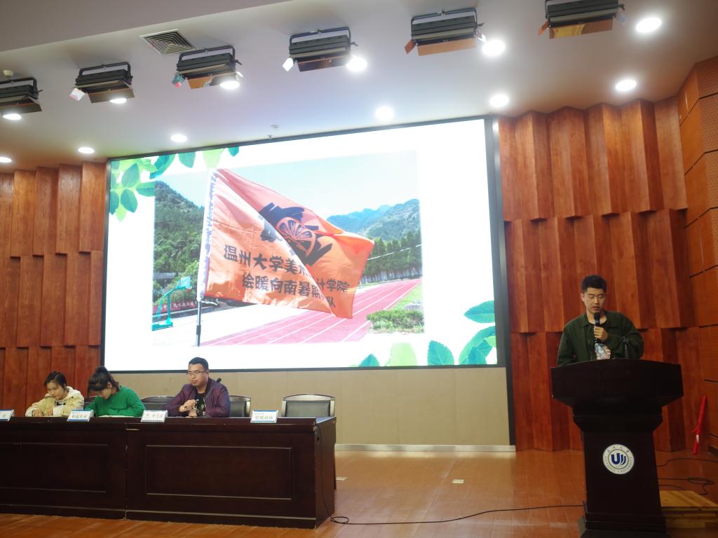 3月25日晚,雷竞技raybet官网入口暑期社会实践动员暨第一次培训大会于雁山厅举行,本次大会由美院团委学生会学术实践部主办,美院2017年优秀实践队长以及团学指导老师李雪涛出席了此次大会,参与本次动员会的成员还有大一全体同学。 此次大会共分为了四项议程,首先是观看2017年暑期社会实践成果视频,视频较为全面的介绍了雷竞技raybet官网入口各个学院、学区的实践队情况,接着由学术实践部代表付秋圆同学为大家介绍了暑期社会实践具体流程及实践重要性。接着,17年优秀实践队队长分享他们的收获与感受,“绘暖向南”实践队队长许雷学长用他幽默风趣的演讲带起了会议的气氛,他鼓励大家通过优质的暑期社会实践,用自己的能力提升自身价值;然后是“艺绘”实践队队长邹琴学姐从她提炼的四个词切入,“创业”、“成熟”、“减肥”、“脱单”,她用这四个词概括自己在实践中的收获,鼓励大家积极参与其中,同时也鼓励大家可以勇于创新,积极创建全新的实践队,她也愿意在策划方面帮助大家,最后是“鞋蕴传承”实践队队长陈晨学姐,她鼓励大家实践与专业相结合,通过实践看到自身专业发展的方向。三位队长通过各自各具特色的展示,并结合自身经历,让大一同学们对社会实践有了一个初步的认识。大会最后李雪涛老师进行了讲话,结合新时期对当代大学生的要求,阐述了实践的重要性及其意义与目的。 此次暑期社会实践大会在很轻松愉悦的氛围中度过。通过这次大会各学生能够更清楚的了解暑期社会实践的基本情况,相信通过这次大会的召开,各学生能积极认真负责的参加暑期社会实践活动。