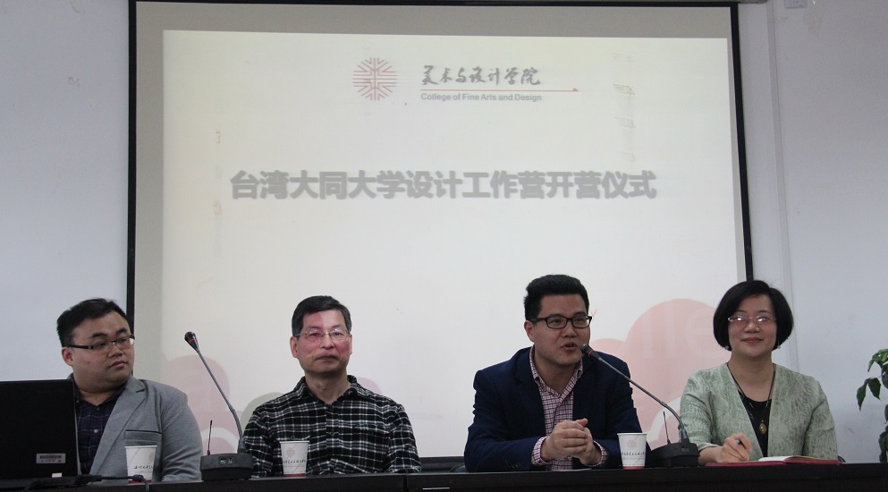 4月9日上午,我院在2B4001举行台湾大同大学涂永祥教授、陈元恺老师设计工作营开营仪式。学校教务处副处长胡瑜、我院教学副院长谢子静、创业学院副院长胡文超、环境设计系主任黄玫玮、视觉传达设计系主任刘俊以及15产品设计、16产品设计专业的同学参加了开营仪式。