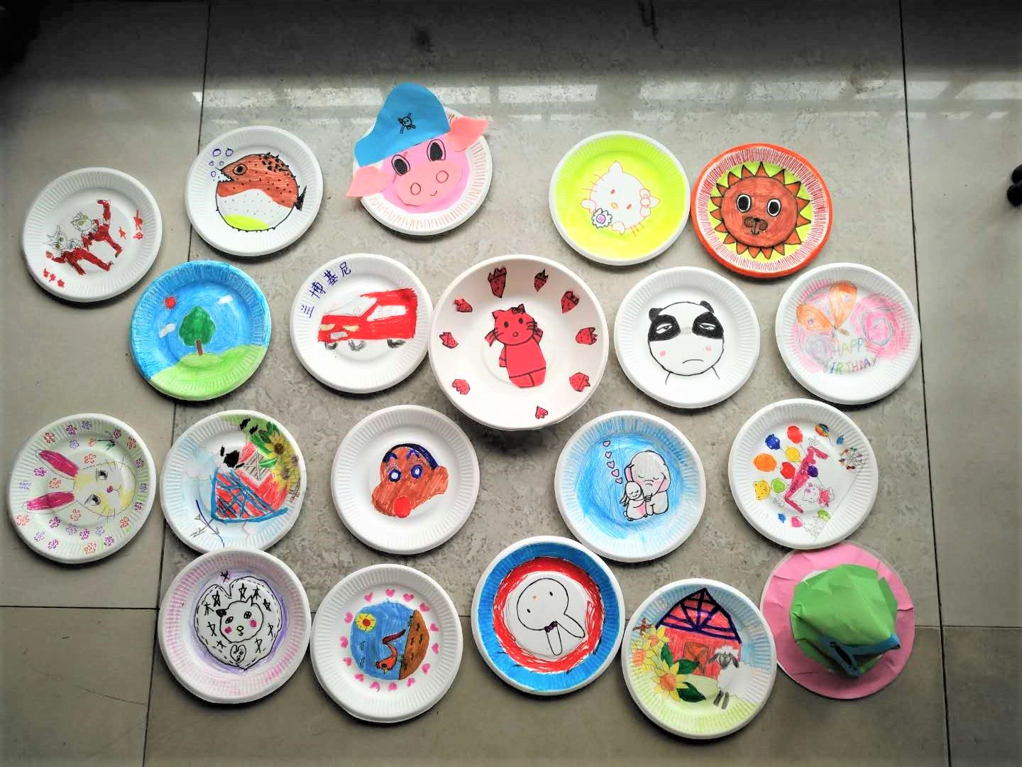 一个个被美化装饰的纸盘托起了小朋友们美丽的心愿。单薄的纸盘,五彩的画笔,在从虚到实的过程中发展了小朋友们的观察力、记忆力、想象力和创造力,在合作、动手制作的过程中,让他们更加懂得了怎样与人沟通,如何提高交往能力。