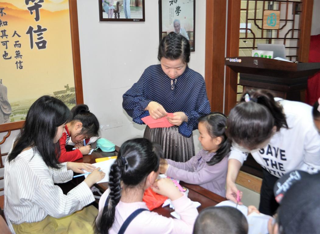 4月21日,美院“艺家人”青年志愿者协会又迎来了新一期梅泉支教。 今天的梅泉有一些不同,这次课程由梅泉社区图书馆的老师为小朋友们授课。在课前展示环节,首先给大家介绍了不同的变色龙以及它们的生长环境,讲得台下的小朋友们听得津津有味,举手发言的十分踊跃。之后老师用一个简单生动的小故事引入今天的正题——折信封,小朋友们可以在信封上画出自己喜欢的东西,而在里面的信纸中,可以写下对对父母的感恩、老师的感谢,遇到不会写的字,志愿者们便会手把手一笔一划地帮助小朋友们完成,现场的活动气氛十分温馨。第二项活动是折纸小游戏,这个活动不限于折什么,于是志愿者们个个拿出了“十八般武艺”,有折小蝴蝶的,有折青蛙的,也有折爱心的,作品数不胜数。在最后的评奖环节,每位小朋友都拿到了小礼物,单纯的笑容在他们脸上灿烂地绽开。 一个个丰富多彩的活动充实了小朋友们整个上午,不管是折纸用的所有心意,还是信封里面满满的爱和充满寓意的小故事,都是大家开心的收获。志愿者们也愿意和小朋友们度过每一个有意义的周六上午,把每一份细心的爱都给予小朋友们,只希望可以换来小朋友们每一个暖到心里的笑容。