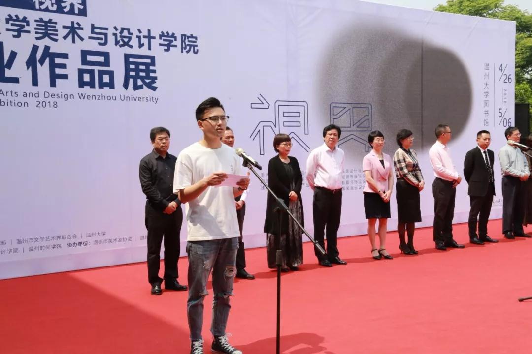 接着,由浙江省文联副主席、温州市文联主席邹跃飞先生致辞。他提到,“通过今天的展览,看到了青年学生的当代文化品格和精神气象,作品中蕴含着年轻人对艺术的理解、对生活的诠释,彰显着青春的活力和灵动的想象。这也是老一辈艺术创作者想看到的青春能量。”