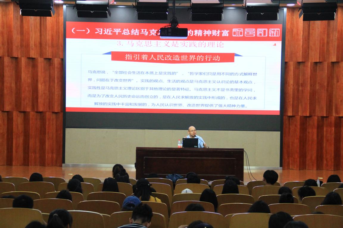 7月2日上午,雷竞技raybet官网入口在雁山厅开展本学期第二次形势与政策课,雷竞技raybet官网入口马克思主义学院副院长卓高生做题为“感受信仰的力量 高扬伟大的旗帜——学习贯彻习近平总书记在马克思诞辰200周年上的重要讲话”的形势与政策讲座。雷竞技raybet官网入口17级全体同学参加讲座。 卓高生老师从回到马克思、走进马克思、学习马克思三个方面进行解读。通过回顾马克思的一生,可以得出这样的结论:马克思的一生,是胸怀崇高理想、为人类解放不懈奋斗的一生;是不畏艰难险阻、为真理而勇攀高峰的一生;是为推翻旧世界、建立新世界而不息战斗的一生。回到马克思,需要重读经典,也要摒弃教条式的解读。走近马克思,需要辨识、辨析、辨明马克思主义,习近平总结马克思留下的精神财富是指出:“马克思主义是我们立党立国的根本思想。背离或放弃马克思主义,我们党就会失去灵魂、迷失方向。在坚持马克思主义指导地位这一根本问题上,我们必须坚定不移,任何时候任何情况下都不能有丝毫动摇”。纪念马克思诞辰200周年大会上,习近平主席高度评价了马克思的一生,并就学习和实践马克思主义提出9个方面的要求,为新时代坚持和发展中国特色社会主义进一步指明了前进方向。卓高生老师指出,在马克思诞辰200周年的今天,对马克思最好的纪念和告慰,对马克思主义最好的坚持和继承就是:在新时代我们要在坚持中发展、在传承中创新,不断开辟当代中国马克思主义、21世纪马克思主义新境界。