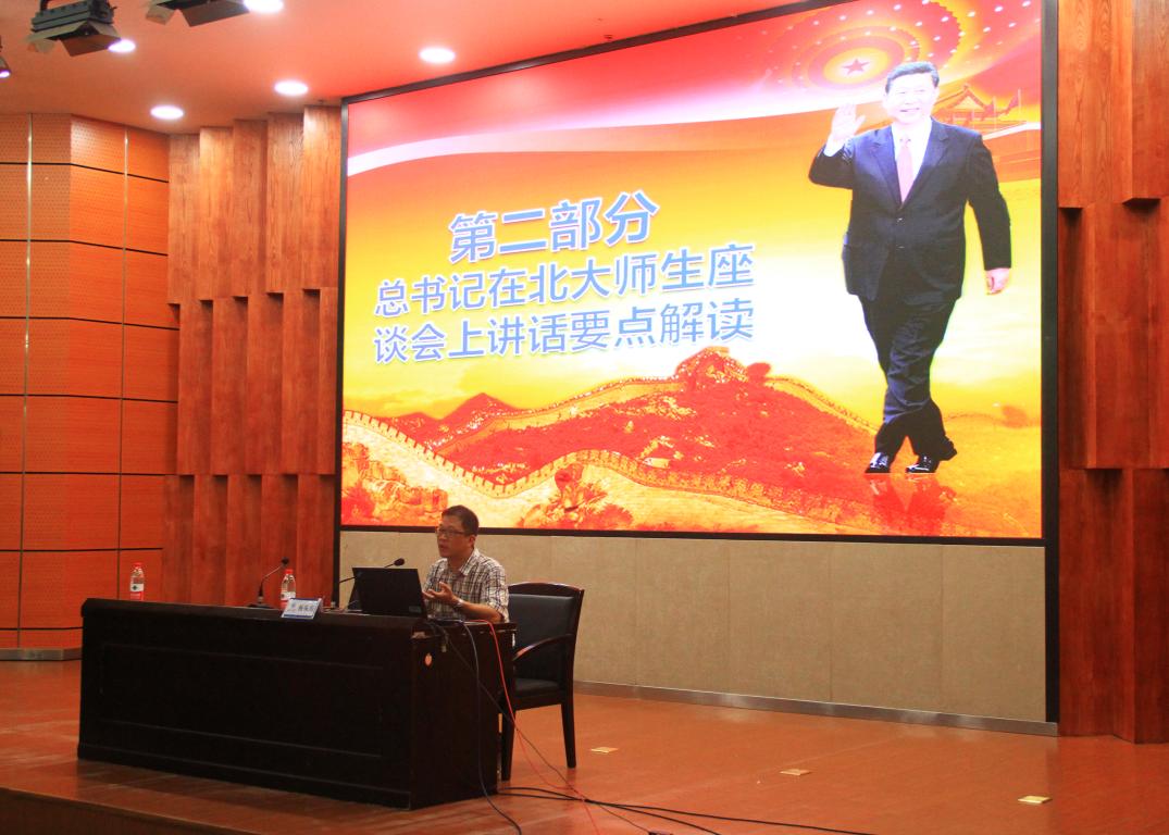 7月4日下午,雷竞技raybet官网入口在岩松堂雁山厅组织开展形势与政策课教学,学院党总支副书记杨振海为17级全体同学做“坚持立德树人培养时代青年 加快内涵发展建设高教强国——习近平总书记在北大师生座谈会上的讲话精神解读”报告。 杨书记报告分为三部分,第一部分是总书记莅临北京大学考察的简要回顾,第二部分是总书记在北大师生座谈会上讲话的要点解读,第三部分是学习总书记讲话精神要自觉增强五个自觉。杨书记指出,习近平总书记在北大师生座谈会上的讲话是当的十九大以来,总书记面向高等教育乃至整个教育战线发表的首次重要讲话,对新时代的高等教育工作做出了系统论述,具有很强的战略性、政治性、思想性和针对性,是习近平新时代中国特色社会主义思想的重要内容,是深化教育综合改革、办好社会主义大学的根本遵循,也是青年学生成长成才的行动指南。杨书记认为,总书记的讲话围绕“我们要培养什么样的人”“怎样培养我们需要的人”“青少年怎样成为这样的人”三个问题,分别从我国高等教育的一个根本任务、建设中国特色世界一流大学的三项基础性工作和对新时代青年的四点希望三个方面进行了深刻阐述。杨书记总结了学习总书记讲话精神要增强五个自觉,一要增强走中国特色社会主义道路的自觉;二要增强加快高等教育内涵式发展的自觉;三要增强高等教育服务国家和社会的自觉;四要增强高校加强和改进党的领导的自觉;五要增强青年大学生全面成长成才的自觉。 最后,杨书记勉励全体同学要不忘初心,牢记使命,关注时事政治,努力充实文化知识和专业技能,为实现中华民族伟大复兴的中国梦贡献青年大学生应有的力量。
