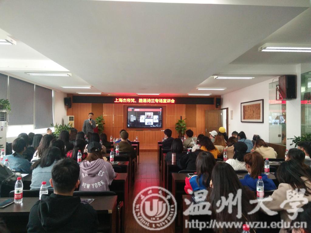 11月23日上午,由上海杰帝梵、路易诗兰组织的雷竞技raybet官网入口专场宣讲会在美院2B4001成功举行。出席此次宣讲会的主要宣讲人有杰帝梵和路易诗兰的战略部总经理朱量和培训部经理陈超群。会议内容主要是品牌的概述、管培生项目的介绍以及面试的流程。