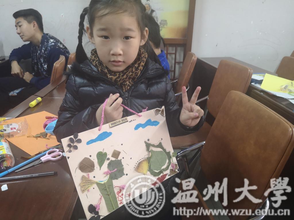 12月1日,在这新的一月的第一天,又是一个周六,梅泉社区文化礼堂再度因美院“艺家人”志愿者的到来座无虚席。小朋友们在这里上课时都自然而然地与上几节课熟识的志愿者哥哥姐姐们结对坐下,静候今天的课程开始。 这堂课名为《秋天的故事》,讲课老师给小朋友们观看了一部有关秋天的动画作为开场动画。接着,讲解老师给小朋友们看了各种树叶的照片,有银杏叶,枫叶,香樟叶,梧桐叶;还有各种创意的树叶组成的作品,有用树叶重组大树的,有用树叶拼成小人的,有用树叶摆成太阳花的,还有用树叶做成一个花园的。老师带领着小朋友们领略了地上随处可以捡到的落叶也能做成美丽的创意图画之后,着实是点燃起了小朋友们创作的热情和欲望。照例的,志愿者哥哥姐姐们开始分发彩纸,勾线笔,水彩笔,剪刀,胶棒等工具。特别的是,这一次还有纯天然野外收集的各类落叶,被清理干净新鲜的分发到小朋友们的桌上。小朋友们开始大展身手了:首先,和哥哥姐姐们商讨构思;然后在卡纸上打草稿;接着开始利用剪刀动手制作树叶使它们变成心里所想的模样;再利用胶棒让它们都粘合再同一张卡纸上。一副秋天故事的景象就这样跃然纸上。小朋友们欣喜的拿着自己的作品来找摄影师姐姐要求拍照留念。课堂尾声,屏幕上放映起了有趣的动画视频。合影留念毕,小朋友们帮助志愿者们归还、整理工具以及材料,然后将自己制作作品留下的垃圾扔进垃圾桶,给这次活动辛苦的志愿者们剩下了很多收拾的精力和时间,真是太懂事啦! 一周一次的课程到此就结束了,小朋友们带回了自己动手制作完成的“秋天的故事”,在冬日的暖阳之中回味着上一个季度,秋天的余韵。小朋友们触摸着卡纸上凹凸的叶片的纹路,那是绝美的自然的恩赐,是天造的艺术。他们怀揣着一颗感恩自然的心踏上了回家的路。