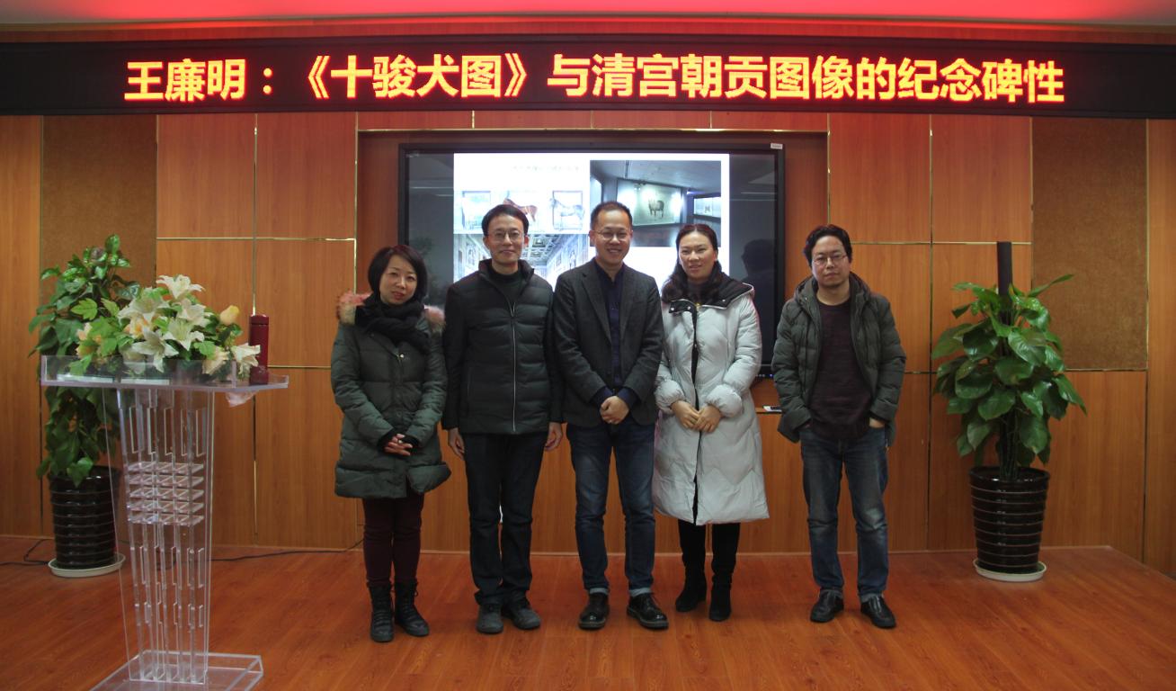 1月3日,德国海德堡大学副教授王廉明老师受邀莅临我院,在农历狗年年终之际深入解析清宫中的猎犬图,为广大师生带来了一场精彩的学术讲座“《十骏犬图》与清宫朝贡图像的纪念碑性”。讲座由我院副院长张晓剑老师主持,美术学系教师、硕士生和本科生近百人到场听讲。