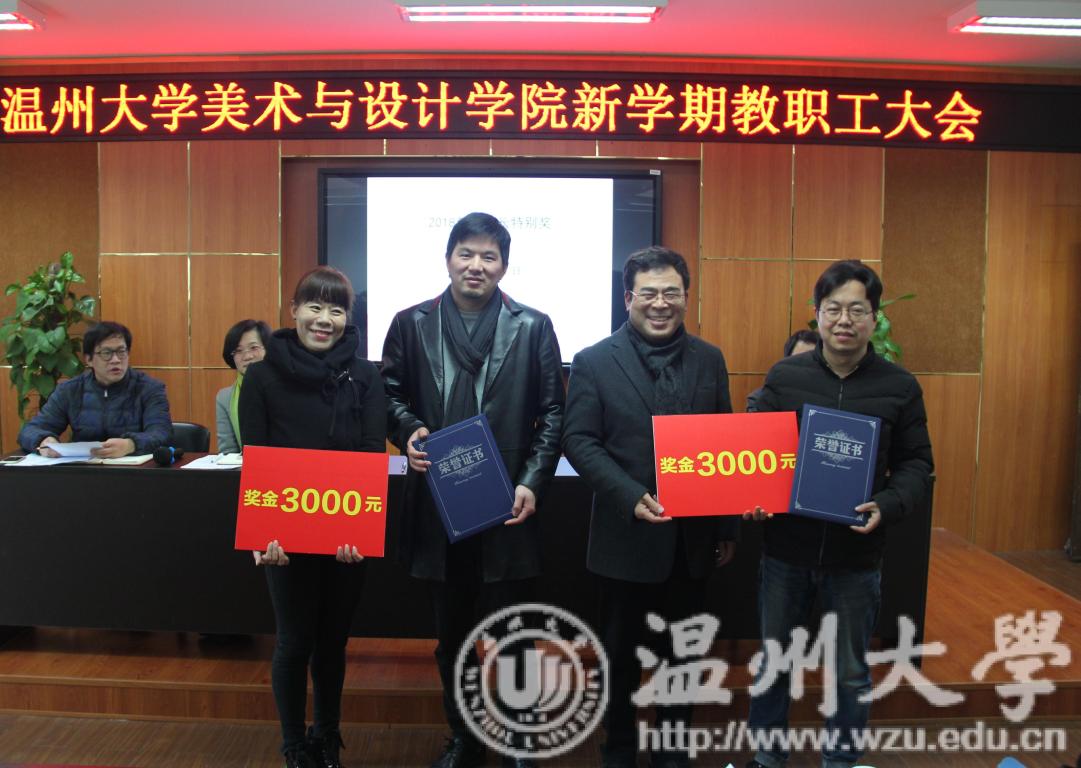 2019年2月27日下午,雷竞技raybet官网入口在2B4001召开新学期全体教职工大会。会议由院党总支书记张丽萍主持。 会议伊始,张丽萍专门宣读了2018年获得学校各类优秀荣誉的教师名单,特别口头表扬了过去一年为学院建设发展做出积极贡献的团队和个人:如2018年温州高校教师美术作品展团队、文化艺术传播教师团队、专业认证建设团队、服务地方团队、指导学科竞赛获奖团队、党建工作团队等。会议为2018年学院“院长特别奖”获得团队和个人颁奖。 院长李运河传达了新学期学校教代会的校长报告要点和书记讲话精神,结合学院实际,提出本学期工作重点。在传达学校教代会精神中,他特别强调学校调整为教学研究型大学的办学定位后,现阶段的两个重点目标:一是创成博士学位授予权单位,二是纳入省市共建的省重点高校建设。如何对应学校的新定位、新目标,李运河提出了今后一段时间学院的重点工作:一是要加快引进人才的步伐,对标学院十三五规划,认真落实人才引进和师资队伍建设这一发展关键;二是要走特色发展之路,我院作为应用型专业、应用型学科,培养应用型人才,要走 “服务地方、特色取胜”之路,走共性加个性、规范加特色、与本地产业结合之路。他提出本学期要着力在毕业展、课题申报、专业认证、市长杯等方面做好具体推进。 张丽萍做总结讲话。她要求全体教师“乘势而上、把握机遇、有所作为”,认清学校发展的大好形势,在申博和省重点校的建设中有所作为,以主人翁的态度和精神来共同推进学院学校的整体发展;要明确阶段重点工作,集中发力,走好每一步、收获一大步;要凝心聚力,齐心协力,紧紧围绕校院中心工作,推动学院发展再上新台阶。 副院长谢子静、张晓剑,副书记杨振海就各自分管工作做学期工作具体部署。(文 李丽\图 冀千里)