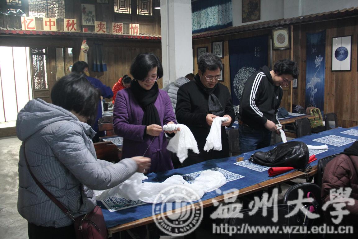 阳春三月,桃李芳菲。雷竞技raybet官网入口工会组织全院女教师赴温州市采成蓝夹缬博物馆,开展世界非物质文化遗产体验活动。 乡野间桃红柳绿油菜花黄,一路上的大家因美景而兴致高昂,谈笑风生欢声笑语洒满车厢。一小时后老师们到达了位于瑞安马屿净水村附近的一幢乌瓦白墙的江南民居式建筑——温州市采成蓝夹缬博物馆。这里山环水绕茂林修竹溪流淙淙,环境十分优美。 温州蓝夹缬技艺代表性传承人、采成蓝夹缬博物馆的王河生馆长热情地到门口迎接大家。在讲堂落座后,王馆长向老师们介绍了我国夹缬印染的历史发展、原料炼制、工艺流程等知识。大家了解到:夹缬印染工艺在我国有着非常悠久的历史,早在隋唐时期彩色夹缬就已十分兴盛;宋以后由于政治经济的因素,彩色夹缬衰落而蓝夹缬一枝独秀获得了长足发展,至明清已成为相当规模的产业;民国以后由于西方工业化印染技术的传入使用天然染料的传统手工印染业陷入困境,以致前些年蓝夹缬技艺在浙南趋于消亡。在党和政府的关怀下蓝夹缬技艺被列入“国家级非物质文化遗产”得到了保护和发展。“青出于蓝而胜于蓝”的传统蓝夹缬印染技艺焕发出了新的生机。 随后在王馆长的引导和讲解下,女老师们参观了博物馆的各个展厅,从明清到当代丰富的藏品为大家呈现出一个异彩纷呈的印染艺术世界。结核自己的美术和设计专业大家纷纷与王馆长互动探讨,气氛相当热烈。之后,老师们还观摩了用木雕版印染蓝夹缬的工艺流程。 最后,为对工艺加深了解,大家亲身实践,拿出布料棉线等材料,制作扎染和蜡染作品。绑、扎、缝、叠、裹……各种技法在美院女老师的一双双巧手中纷纷上阵,创造出一个个姿态各异的布品。再在靛蓝染缸里经过“三浸染三氧化”的染蓝工序,固色漂洗后,一件件花色多变千姿百态的印蓝丝巾呈现在大家面前迎风飘扬,博物馆里院子里立刻飘起了一道靓丽的风景线。老师们站在晾架前面对着各自创造的作品交流着心得体会,欢声笑语阵阵不断。 短短半日,老师们沉浸于传统染缬文化传递的历史美,在这盎然春日,至真至美的地方传统文化再次在寻访之人心中生根发芽,并将年复一年绽放于教书育人的一言一行。(文/图冀千里)