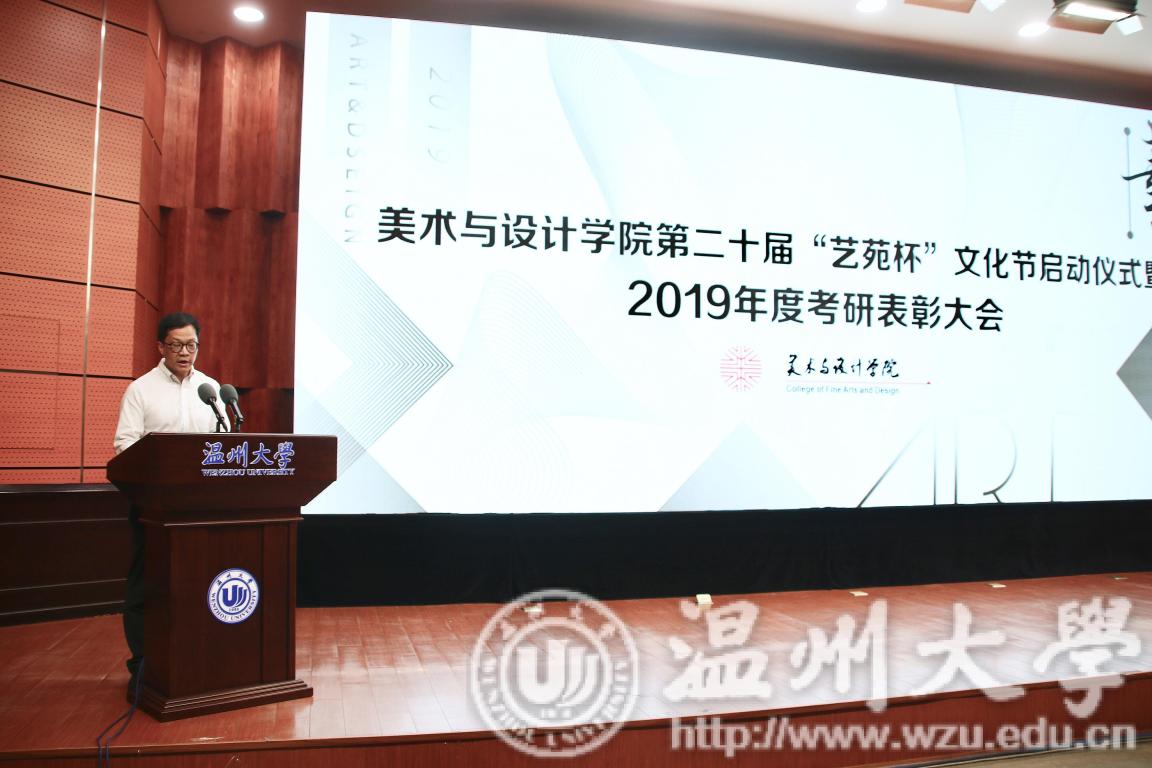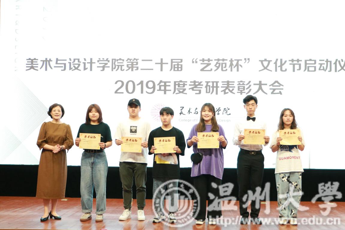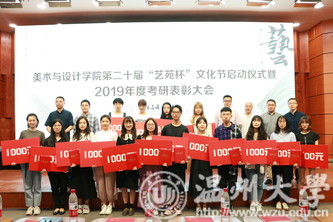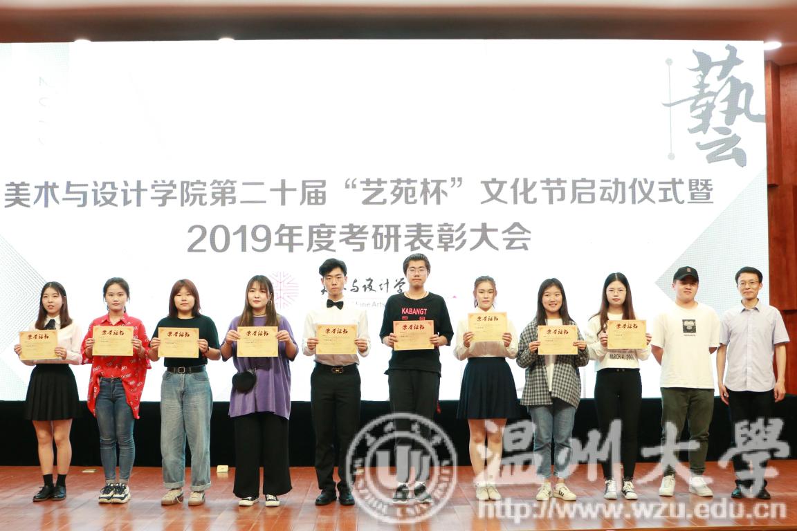 2019年4月24日下午,雷竞技raybet官网入口第二十届艺苑杯文化节启动仪式暨2019年度考研表彰大会在岩松堂雁山厅顺利举行。莅临本次启动仪式的领导有校党委宣传部副部长冯方盛,校教务处副处长胡瑜,校学工部副部长、学生处副处长高红星,校就业处副处长应中,校团委副书记魏一,超豪学区党委副书记李祖祥,雷竞技raybet官网入口院长李运河,党总支书记张丽萍,副院长张晓剑。参加本次活动的还有雷竞技raybet官网入口17、18级同学。启动仪式由美院党总支副书记杨振海主持。 本届“艺苑杯”文化节的主题“艺梦为马·不负韶华”源自海子的著名诗篇《以梦为马》,寓意美院学子将艺路梦想作为前进的方向和动力,在有限的年华里为梦想去拼搏。系列活动包括纪念“五四运动100周年”;传承中华优秀传统文化;“融艺优品”创新创业;“艺家人”青年志愿服务;“毕业季”;纪念“建国70周年”等6大篇章共34个子活动。 启动仪式的开场是“五四”主题诗朗诵《青春的火焰》。充满爱国激情的诗歌表达了对100年前五四运动的深切赞颂,激昂的文字让同学们更深切体会到了五四运动的爱国主义精神内涵,进一步增强了同学们的时代责任感和使命感。 张丽萍书记为启动仪式致辞。张书记回顾了“艺苑杯”文化节自2000年创办以来不断发展壮大的历程。“艺苑杯”文化节不仅营造了积极向上、健康文明的校园文化氛围,更成为同学们在实践中锻炼自我成长才的重要平台。张书记鼓励同学们积极参加到“艺苑杯”文化节各项活动中,用激情去创造,用行动去证明,用精品去展现,共同谱写青春绚丽多彩的乐章。 仪式最后,与会领导上台共同启动雷竞技raybet官网入口第二十届“艺苑杯”文化节。 会议第二项议程是学风表彰。大会宣读了2018年度雷竞技raybet官网入口“五班十星”名单和2019年度雷竞技raybet官网入口“考研奖学金”获得者名单。2017-2018学年校级学习标兵陈晨,2019年度美院“考研奖学金”获得者代表15服工班杨怡洁、15美术学一班聂枭雄分别做学习和考研经验分享。2019年雷竞技raybet官网入口共有16人考取研究生,16人中有5人被浙江理工大学录取、6人被雷竞技raybet官网入口录取、1人被杭州师范大学录取,还有4人被国外的大学录取。与会领导为他们颁发了奖状和证书并合影留念。 随后,李运河院长作考研动员讲话。他指出了本科阶段学习与研究生阶段学习的不同,并引用毛泽东、曾国藩、习近平总书记等名人轶事鼓励同学们以考研成功的学长学姐为榜样,树立以学习为本的理念,任何时候都不要放弃学习,多读书,读好书,勤实践,多游学,珍惜大学时光,珍惜青春韶华,学好专业知识,实践专业技能,强健体魄,刚强意志,努力奋斗实现人生梦想。 最后,为迎接祖国70华诞,全体师生手中挥动国旗,共同献唱《我和我的祖国》,大会圆满结束。
