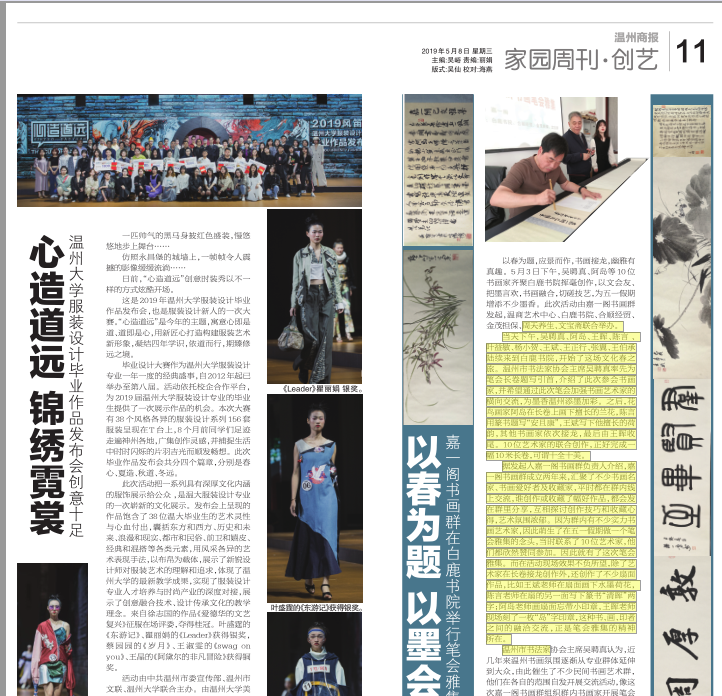 活动由中共温州市委宣传部、温州市文联、雷竞技raybet官网入口联合主办。由雷竞技raybet官网入口、浙江风笛服饰有限公司、温州时尚学院合作承办。商报记者郑丽娟