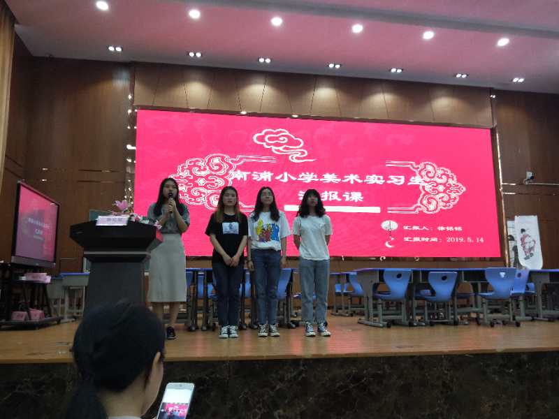 作为学校实践教学导师,南浦小学美术教研组长林茫对这三堂课进行简短的评价与分享。之后胡建南老师就这三堂课进行点评,认可了她们的成果与进步也指出了其中还存在的不足。最后16级实习生,17级美术学师范全体师生和南浦小学老师共同合影留念,本次汇报课圆满结束。