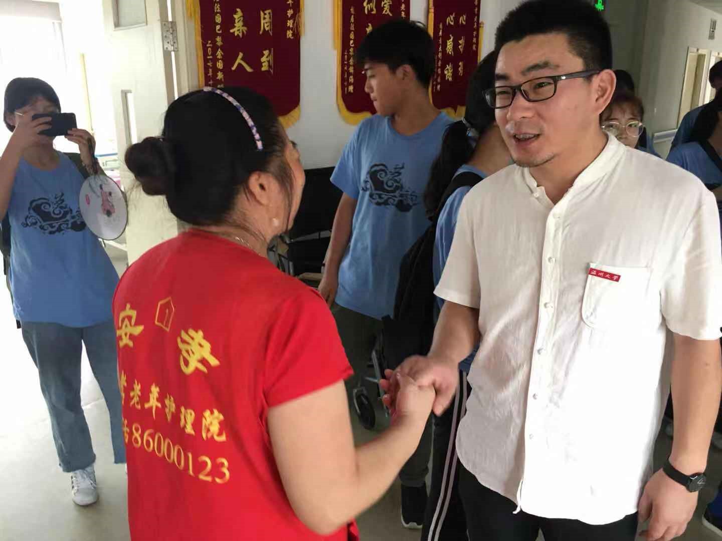 2019年7月18日上午九时许,雷竞技raybet官网入口副院长胡文超慰问了正在温州安孝老年护理院关爱老人活动的“艺韵晚霞”暑期社会实践队。初到敬老院,胡院长一行受到实践队员的热情欢迎,通过和队员们简单的交谈后,胡院长进入敬老院里,和敬老院里的护理人员详细了解敬老院的基本情况。