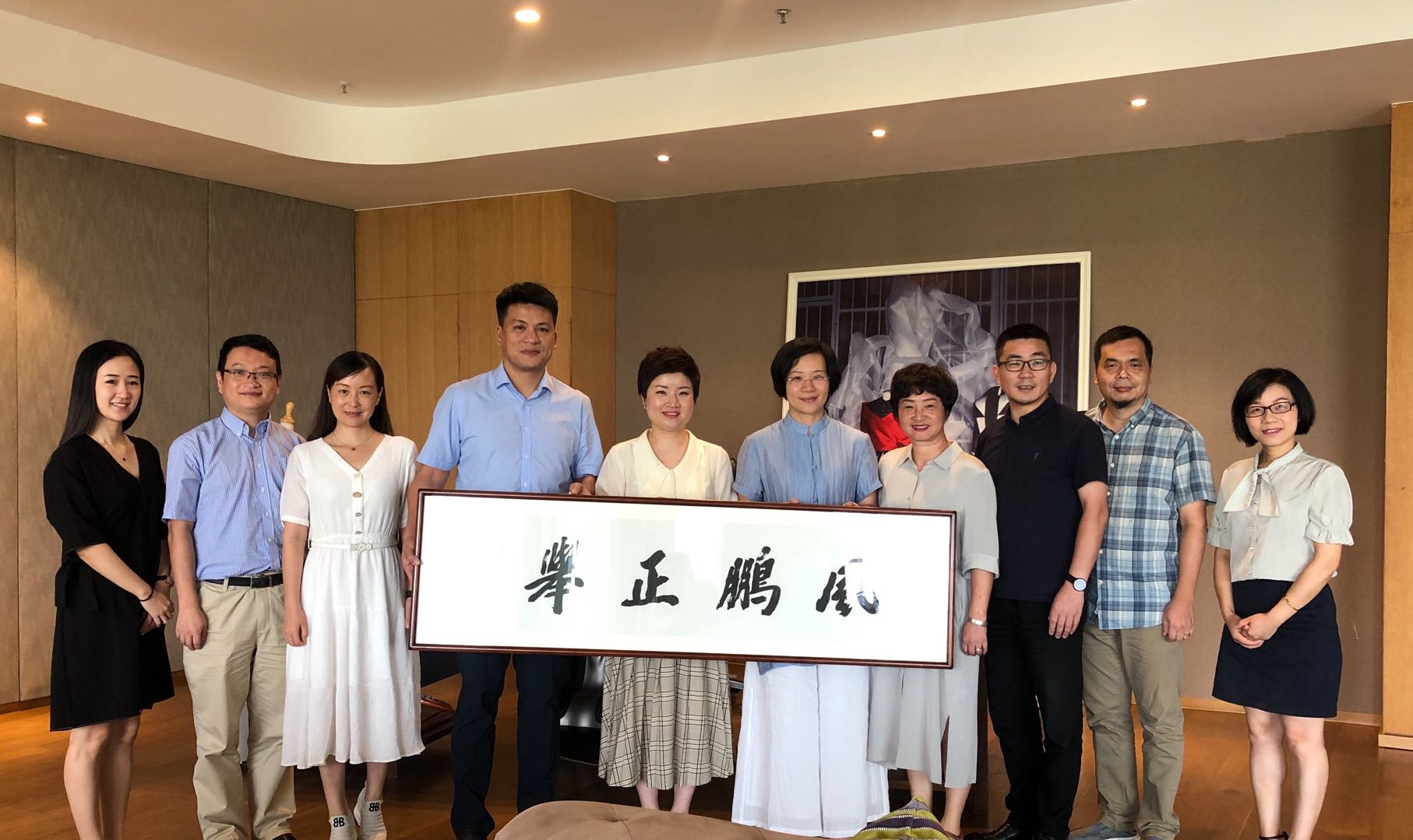 调研期间,新班子成员与风笛企业高管一一介绍并认识,双方谈过去、话未来,围绕着进一步深化实践教学探索、实践型复合型人才培养、大学生创新创业项目的校企合作培育、以党建学院形式开拓校外党建工作、打造学生社会实践队伍品牌、实现学生就业与企业招聘的共赢等诸多方面进行了深入探讨和交流。