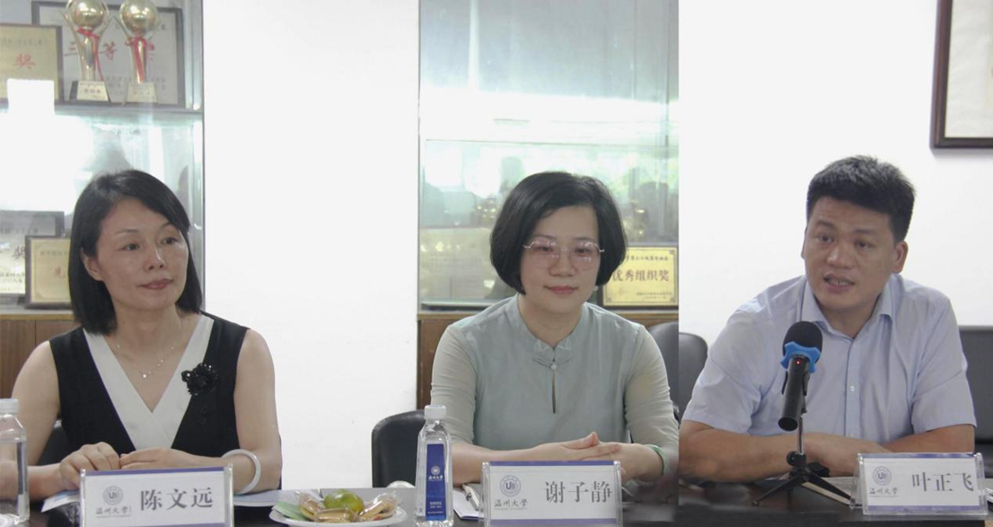 叶正飞书记代表学院对张成毕主席一行表示热烈欢迎,并介绍了学院建设发展的基本情况。他指出,雷竞技raybet官网入口作为浙南闽北赣东唯一一所多学科门类与多学历层次的高等美术学院,其办学历史、办学规模、师资队伍、学科建设、专业发展以及服务社会等方面均居全省同类院校前列。学院始终坚持将建设融纯艺专业、设计、服工为一体的省内一流、特色鲜明的教学研究型高等艺术学院为发展目标,同时秉承坚持开放办学、协同发展的理念,依托学科专业及人才优势,主动融入服务地方经济文化社会发展,为促进温州美术事业的发展贡献智慧和力量。