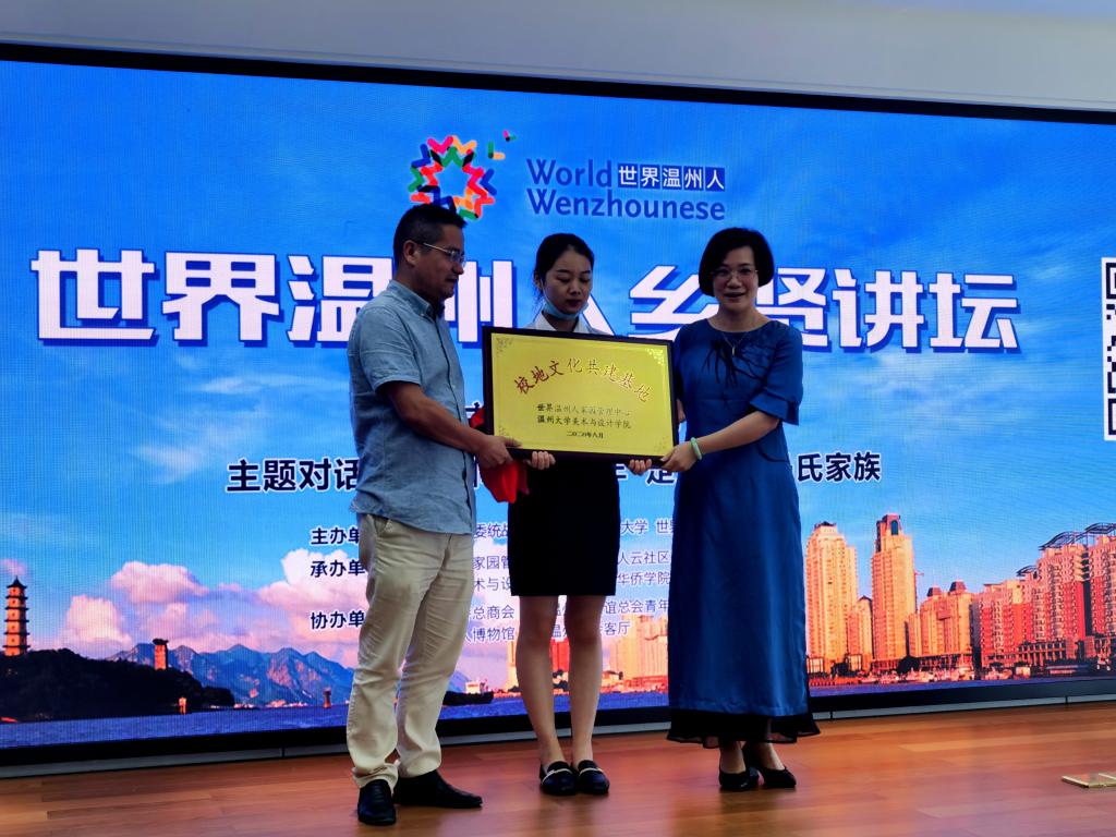 8月20日下午,雷竞技raybet官网入口与世界温州人家园校地文化共建基地揭牌暨“乡贤讲坛——相约温大美术名家”和“瓯潮会客厅——温大美术新视界”两项品牌系列活动启动仪式在世界温州人家园瓯说厅举行,这个活动有着特殊意义,是市委统战部和雷竞技raybet官网入口校地共建的重要内容,重点依托雷竞技raybet官网入口、华侨学院联手世界温州人家园共同为海内外温州人带来“温大美术名家”系列讲座,服务世界温州人。中共温州市委统战部副部长蔡仁燕,雷竞技raybet官网入口党委委员、宣传部长潘玉驹出席仪式并致辞。世界温州人家园管理中心主任郑圣洁、雷竞技raybet官网入口省部共建办副主任包含丽,雷竞技raybet官网入口院长谢子静、国际教育学院(雷竞技raybet官网入口华侨学院)党委书记林爱菊、雷竞技raybet官网入口党委书记叶正飞,名家讲坛首期主讲嘉宾马亦钊、讲坛第一季中青年骨干名师代表陈伟、孟永国、关明新、丁海涵、楼晓勉、张晓剑,以及社会各界朋友70多人参加了现场活动,活动同时采取线上直播,近5万海内外温州人参与了线上活动。 启动仪式上,蔡仁燕副部长指出,世界温州人家园是温州市委、市政府推进内外温州人融合发展而倾力打造的城市名片,是世界温州人的情感地标、精神家园、形象窗口、服务高地,也是温州人精神的展示平台。希望通过与雷竞技raybet官网入口校地文化共建平台,邀请更多的温大名家大师为更多海内外温州人讲述展现温州人文历史和温州人精神,也为世界温州人家园注入更多的精神内涵,凝聚更大的精神力量共同服务世界温州人。 潘玉驹部长在致辞中深情回顾雷竞技raybet官网入口的建立建设与“侨”的渊源故事,他指出雷竞技raybet官网入口是一所特色鲜明、侨味浓厚的大学,进入新时代,温大继承并大力弘扬侨的传统,侨的特色日益彰显,当前学校正在努力创建以侨为特色“省部共建”高校,希望世界温州人家园和温大雷竞技raybet官网入口校地文化共建平台能够持续高质量推进建设活动,打造服务世界温州人的文化活动品牌。 仪式上,郑圣洁主任和谢子静院长分别代表两家为校地文化共建基地揭牌。蔡部长、潘部长分别为马亦钊老师和第一期中青年骨干名师颁发讲坛证书。 随后,马亦钊老师倾情带来第30期世界温州人“乡贤讲坛”暨首场温大美术名家讲坛分享《书画传家三百年,温州马氏家国情》。马亦钊老师是雷竞技raybet官网入口副教授、浙江省文史馆馆员、中国书法家协会会员、西泠印社社员、温州市书法协会顾问,出身“书画传家三百年”的温州马氏家族,1985年调到温大任教,后担任温大艺术设计系主任。他深情回忆讲述了原温大创办初期,曾面临诸多困难时,广大海外温籍华侨四处奔走相助,纷纷捐款的动人故事。爱国楼、爱乡楼、星洲楼、任岩松礼堂、林昌横教学楼等楼宇均由温籍侨胞出资捐赠,温大也深深地扎根在了温州这座有着浓浓的“侨”元素的城市。马老师还通过祖父马孟容墨蟹画《看尔横行到几时》、叔祖马公愚楷书《正气歌》,讲述了上世纪三四十年代民族危难之际,祖辈用艺术武器抨击侵略者,展现了家国情怀和民族气节。他还总结了马家家训:认认真真读书,踏踏实实做学问,但求真才,不事宜扬,不谋官职,不图私利,只求学有所长服务社会。听马老师如数家珍、徐徐道来,兴致高时,现场泼墨挥毫,展大家风采,现场的观众无不动容、深受感动,席间时时爆出阵阵掌声。 据悉,雷竞技raybet官网入口美术名家名师系列讲坛包括“乡贤讲坛——相约温大美术名家”和“瓯潮会客厅——温大美术新视界”两项品牌系列讲座,活动由温州市委统战部(市侨联)、世界温州人联谊总会和雷竞技raybet官网入口共同主办,由世界温州人家园、雷竞技raybet官网入口、华侨学院、世界温州人云社区联合承办。雷竞技raybet官网入口将充分发挥专业优势,邀请学校名家名师组成讲团,成建制在世界温州人家园登台亮相,叶玉昶、张如元、马亦钊等一批前辈校友名家,以及谢子静、邓国祥等一批在职雷竞技raybet官网入口中青年骨干名家,将陆续在讲坛举办讲座、公开课、小型艺术品鉴会、读书沙龙等内容形式丰富的活动,涵盖美术、书法、时尚、设计等各类大美术范畴,为华人华侨讲述温州文化艺术和人生故事。系列讲坛还联动世界温州人云社区,开展线上线下互动,构建全球联动传播模式,为全世界温州人,以及关注温州发展的各界人士,贡献温大人的艺术才智。