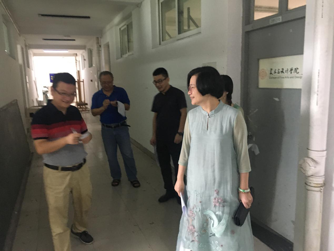 周四上午校领导潘玉驹、部门领导李密、校督导袁建国、美院领导谢子静、胡文超、美院教务科黄呼尔励,听了18美师3班《美术概论》张晓剑老师的课,张老师的课程幽默风趣有内涵。授课导入以3个为什么引导学生参与探讨,引入案例与实际例子引起学生深入思考,通过知识过渡与展开引导学生深化对问题的认识。张老师教态自然,语言表达逻辑强,在讲台、屏幕、学生之间游走保持与学生交流,达到了很好的积极互动与沟通效果,受到了听课领导的一致好评。 为了规范教学程序、提高教学质量、促进教风、学风建设。我院积极推行领导听课制度。领导干部提出宝贵意见,有助于教师发现问题,解决问题。 图:课堂生动打动听课人员 图:授课导入、知识过渡与展开 图:课后研讨 周二开课第一天,院领导谢子静、胡文超、顾任飞、杨丽君、教务科黄呼尔励巡查了我院各教室与课程,对师生们的上课状态及学院开学前教室设备等教学准备予以了肯定。 图:院领导、校督导讨论师生教学状态 图:院领导课间与教师交流 图:院领导探访教师工作室 图:部分课堂场景