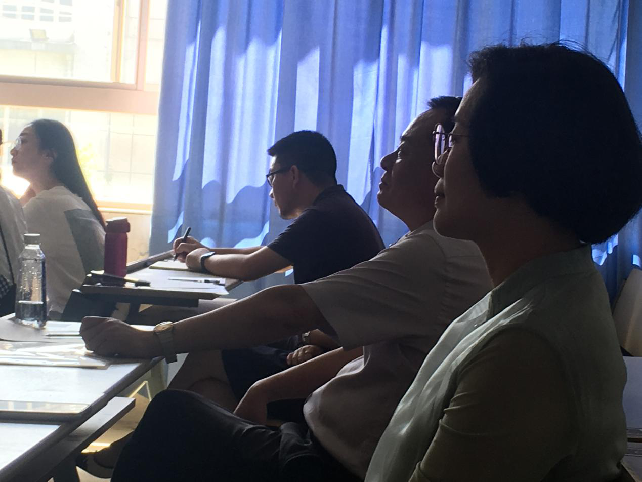 周四上午校领导潘玉驹、部门领导李密、校督导袁建国、美院领导谢子静、胡文超、美院教务科黄呼尔励,听了18美师3班《美术概论》张晓剑老师的课,张老师的课程幽默风趣有内涵。授课导入以3个为什么引导学生参与探讨,引入案例与实际例子引起学生深入思考,通过知识过渡与展开引导学生深化对问题的认识。张老师教态自然,语言表达逻辑强,在讲台、屏幕、学生之间游走保持与学生交流,达到了很好的积极互动与沟通效果,受到了听课领导的一致好评。