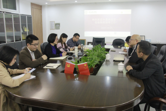 2020年10月29日,永嘉统战部副部长郑焕益、党派科科长金文通、乡贤工作负责人陈炳一行来我院交流工作,院长谢子静、副书记杨丽君、副院长胡文超、顾任飞、院办主任张丽出席会议。