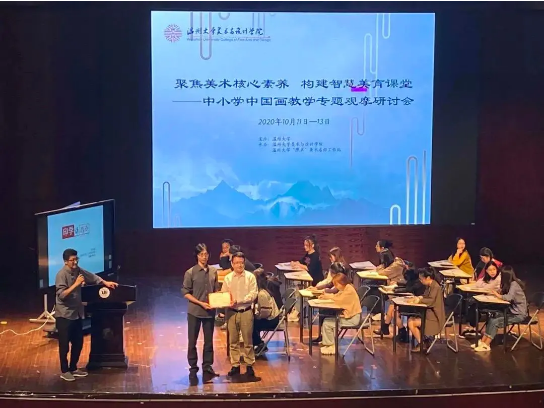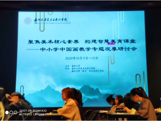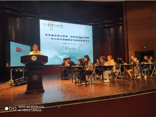“画阑开处冠中秋”,桂子飘香美院传。2020年10月11日,聚焦美术核心素养,构建智慧美育课堂---中小学中国画教学专题观摩研讨会在在雷竞技raybet官网入口南校音乐厅举行,研讨会安排了课堂教学展示,主题讲座,名师经验交流等环节,内容丰富、形式多样、深入探讨了美术教育当前所需要关注的美术核心素养以及对于中国画在课堂上的渗透和教法等教学问题。