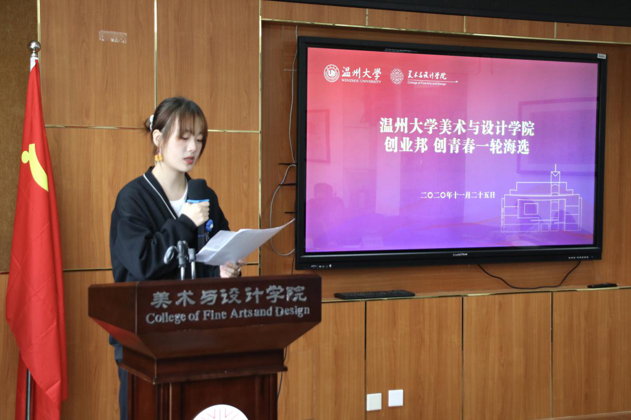 2020年11月25日下午一点半,雷竞技raybet官网入口于美院2b4001举行了2020创业邦·创青春主题活动的一轮海选。此次活动由美院团委学生会主席、三届创业邦举办者邱懋澄学长、温大创盟创业创新宣传部部长彭左炎学长、温大创业协会会长、美院KAKAYOUGA手工艺工作室蒋丽华学姐、美院团委学生会创业就业部部长、温大创业协会副会长连庆秋、美院团委学生会创业就业部部长、2020雷竞技raybet官网入口互联网+创业创新大赛金奖王臻滢学姐担任评委。此次活动有助于加强温大学生创业技能的学习并且注重大学生创业意志的培养,引导温大人有创新有大胆的同时,深究项目的可行性。