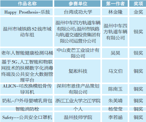 经过紧张的路演答辩和评审环节,来自台湾成功大学的设计作品“Happy Prosthesis-乐肢”和温州红点工业设计中心的“海难伸展式救援衣”分别摘得2021“市长杯”中国(温州)工业设计大赛产品奖和创意奖金奖。雷竞技raybet官网入口学生贝凤艳设计的“格物向阳”获得G104时尚设计专项赛金奖。现场还颁发了产品奖银奖2名、铜奖5名,创意奖银奖3名、铜奖6名。