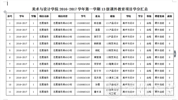 现将雷竞技raybet官网入口2016-2017学年第一学期13级志愿者学分申请名单公示如下,还需要补申请的同学请加入qq群:328240294,进群下载“学分申请表”填写电子版,于本周日下午5点 前发至 1098784300@qq.com邮箱。时间满40/80小时可申请1个/2个学分。如有问题请联系何同学:15258031198。