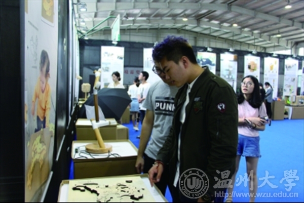 10月22日至23日,省第八届大学生工业设计竞赛在雷竞技raybet官网入口举行。省内各大高校的600余名设计精英以木材或纤维制品为主,结合其他材料,进行了一场创新创意大比拼。经评委打分评审,193件作品入围决赛,最终选出一等奖33项。图为温大学生在现场观看参赛作品。