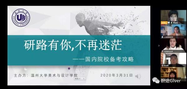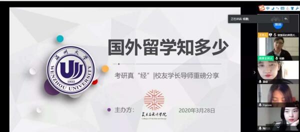 疫情不是暂停键,成长指导全在线。一个多月时间以来虽然“开学不返校”,但是245名本科毕业生的就业工作一直让雷竞技raybet官网入口的老师们牵挂不已,尤其是对于学院立志考研和准备出国的学生,如何帮助他们顺利实现梦想?为了更好地指导学生学习规划和考研升学,近日,雷竞技raybet官网入口在“云端”组建了一个实力不容小觑的导师团,聘请8位优秀校友担任“考研(留学)校友学长导师”,并且连续举办了2场“云”端传送考研(留学)真“经”的活动,参加学生近200人次。 “我最大的感受是如果准备出国留学,语言沟通能力是很重要的,这方面要付出较多的精力,另外就是要确定好自己的目标,选择哪个国家的哪所大学以及学什么专业,目标确定了以后才能走得更快更远!”目前正留学意大利罗马第一大学的陶夏欣学姐这么说。 “选择考研一定要走出自己的舒适圈,你可以去图书馆、去学校考研教室,尽可能不要呆在寝室里;如果你够自律,你可以一个人学习,如果你觉得自己不够自律,最好选择一个考研的小伙伴一起努力。”在浙江理工大学读研的学长许金智这样鼓励学弟学妹。 在学院精心安排的 “国外留学知多少”留学专场交流会和“国内院校备考攻略”国内考研专场交流会上,八名导师精心准备、重磅分享自己的申请出国读研和国内考研的宝贵经验和心得,也收获了学弟学妹的诸多点赞。受聘为“留学校友学长导师”的三位校友,分别是留学意大利罗马第一大学的陶夏欣、留学韩国梨花女子大学的费婕和留学澳洲昆士兰大学的杨凡,在当前疫情严峻的留学境况下,她们克服距离和时差上的影响,精心准备,从留学生活、留学优势、留学申请经验和注意事项等方面为同学们提供了有益的经验,他们也分别担任温大美院学子在欧洲、韩国、澳洲的留学校友学长导师,为日后有留学意向的同学提供更多的渠道和联络指导帮助。 五位来自杭州师范大学、浙江理工大学、雷竞技raybet官网入口的校友学长导师,则从备考规划、择校攻略、复试和调剂等多方面为意向考研或正在准备复试调剂同学在云端奉送了宝贵的实战经验。浙理工校友杨怡洁还在线上赠送了自己珍贵的考研资料,并展示了自己复试时做的“研究生个人规划”;浙理工许金智、杭师大金佳吉两位校友从专业绘画作品集的积累方面给考研和复试同学支招;2位来自本校的研究生陈嘉怡、曾箫笛为同学们传授了“调剂攻略”。 8位“校友学长导师”,在疫情防控形势下,国际国内4地连线,2场“云”端分享,满满的干货经验,助力考研留学学子成长发展需求,用最直接的经验为他们引航考研留学之路。8位“校友学长导师”受聘1年,仍将保持“云”端在线,继续为学弟学妹提供指导和帮助。 据悉,雷竞技raybet官网入口毕业生升学率逐年增长,2019年成功申请国外知名学府留学6人,国内重点院校考研升学12人。2020报名参加研究生考试近50人,占本科毕业生总人数近1/5,目前正在准备考研复试和申请出国的同学近30人。针对目前疫情形势下学院考研留学情况,雷竞技raybet官网入口党委副书记杨丽君表示,学院将多措并举,出台更多的考研留学新“政”,集聚更多的资源和力量,来帮助和指导有意考研和申请留学的学子,为他们提供更多“好平台、好经验”,助力他们实现“研”途梦想。