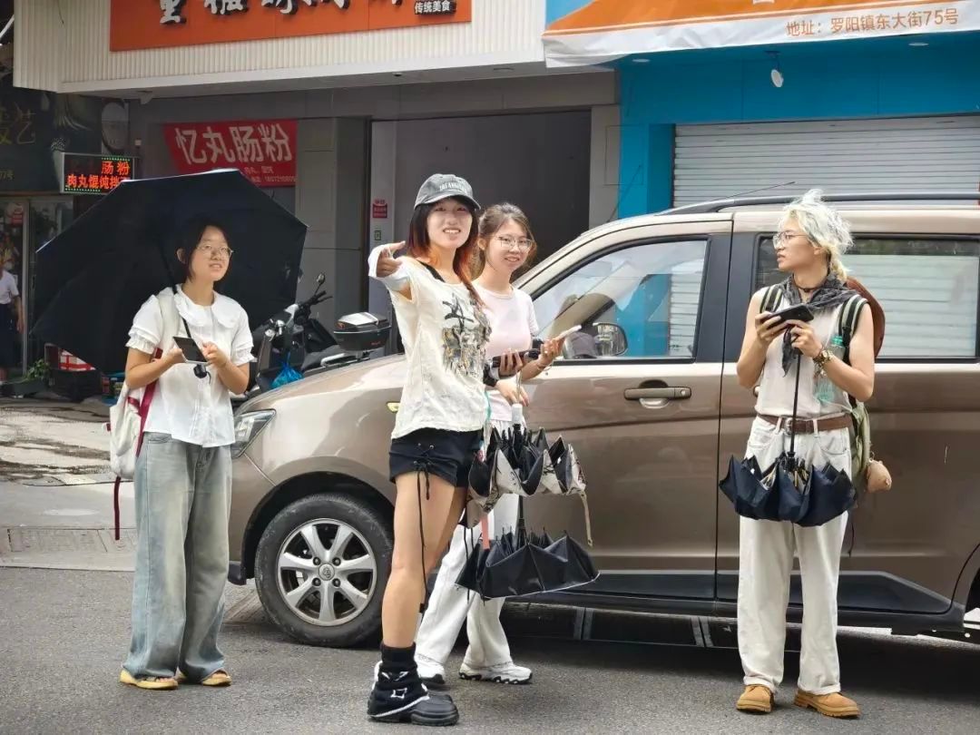 队员们首先深入罗阳镇东大街等地开展实地调研,穿梭于古朴街巷,通过拍照记录街巷建筑风貌、卷帘门现状,细致观察建筑细节与生活场景,探寻街区历史脉络与文化印记,系统梳理地域环境与文化特色。依托“板绘”“PS”“AI”等数字技术,启动“门楣焕新・智绘泰顺”创意设计项目。