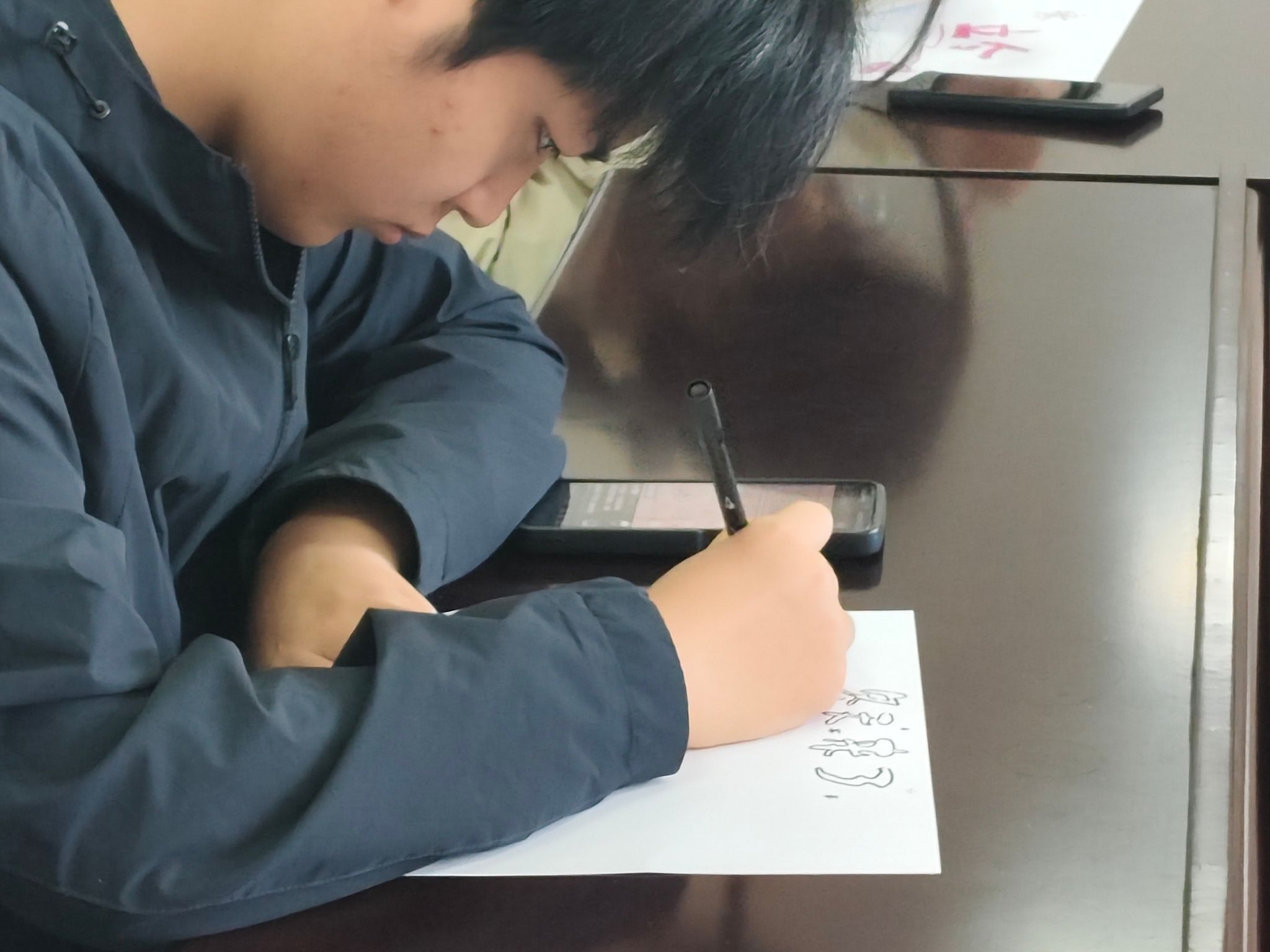 随着情绪被“激活”,现场便进入了创作的河流。心理协会的同学们铺开画纸,他们的主题是“我心中的立冬”。笔下流淌出的,不再是抽象的节气概念,而是具象的生活与情感:可能是记忆中一碗冒着热气的汤圆,是窗外一棵树叶落尽的梧桐,又或是想象中一场还未落下的初雪。每一笔色彩,都是心事的映照。