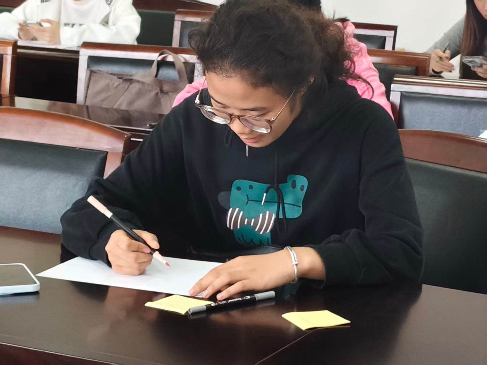 笔墨与心灵,总有一场不期而遇。当初冬的薄霜悄然攀上窗棂,我们选择不以沉默回应寒冷,而是以丹青为媒,以温度计为尺,在一方天地间,度量并描绘内心的万千气象。11月16日下午1点半,党员之家A309教室被一种温暖的喧嚣所填满。这里正进行的,不只是一场社团活动,更是一场心灵与冬日的初次对话。由野逸书画协会与心理协会联手打造的“立冬心理温度计”活动,让这个本该万物收藏的节气,变成了情绪与创意欣然“登场”的舞台。