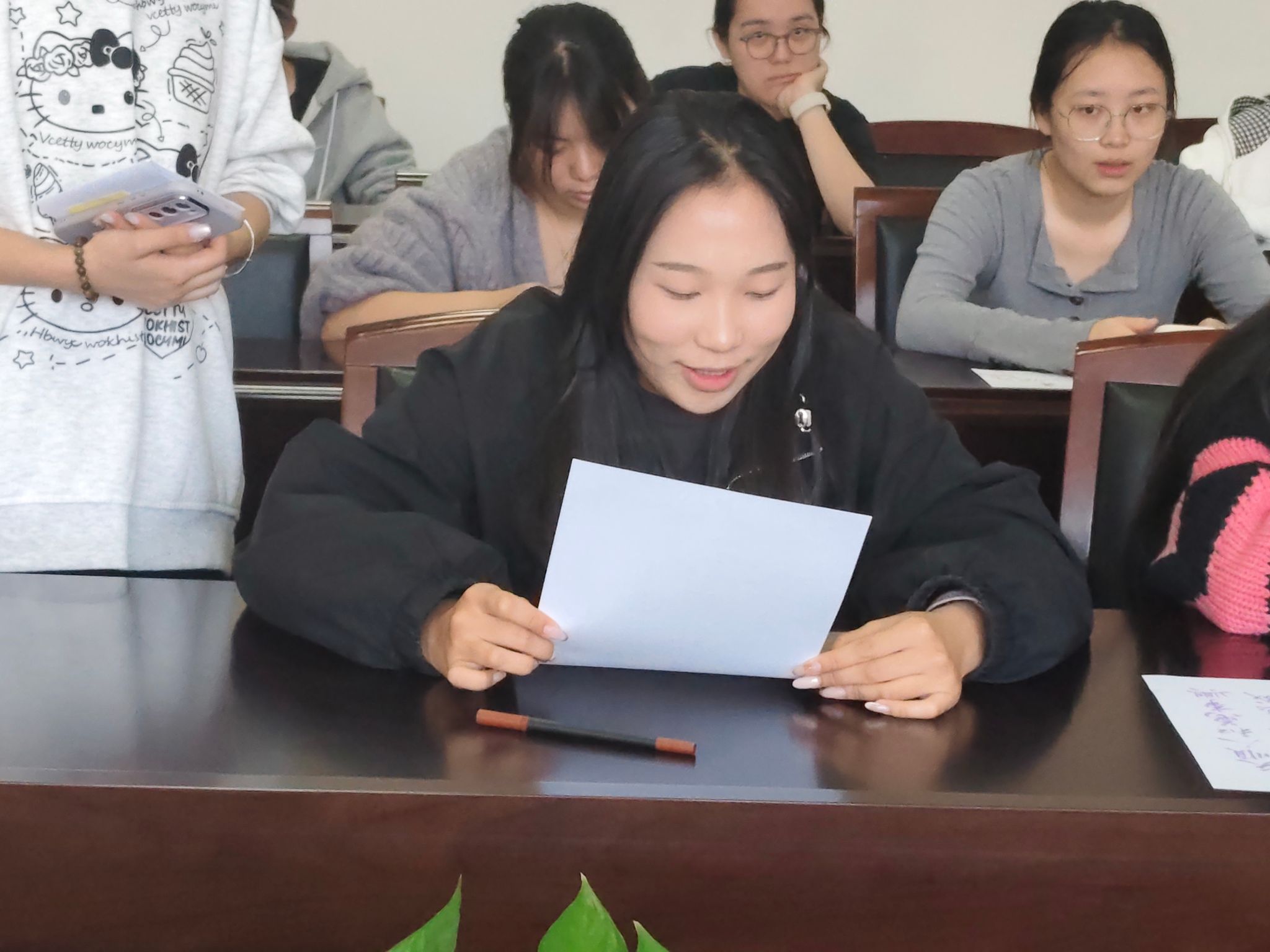 当个人的画作与集体的书法在展板上汇聚,活动进入了最温暖的分享环节。同学们围站在一起,讲述作品背后的心情故事。有人因一幅画而结识了有相似感受的新朋友,有人因一句诗而产生了深深的共鸣。笑声与掌声此起彼伏,艺术的表达在此刻成为了连接彼此的桥梁,驱散了冬日的微寒。